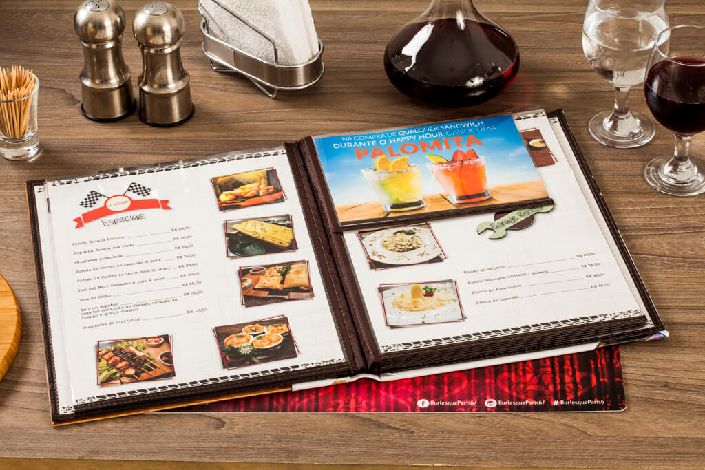 Sem contar com o fato do Cardápio de Madeira ser um produto com maior durabilidade e resistência, gerando a combinação perfeita entre economia e luxo, requinte e qualidade superior.