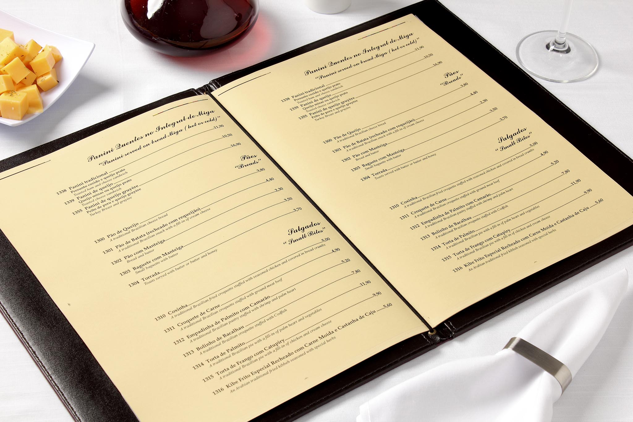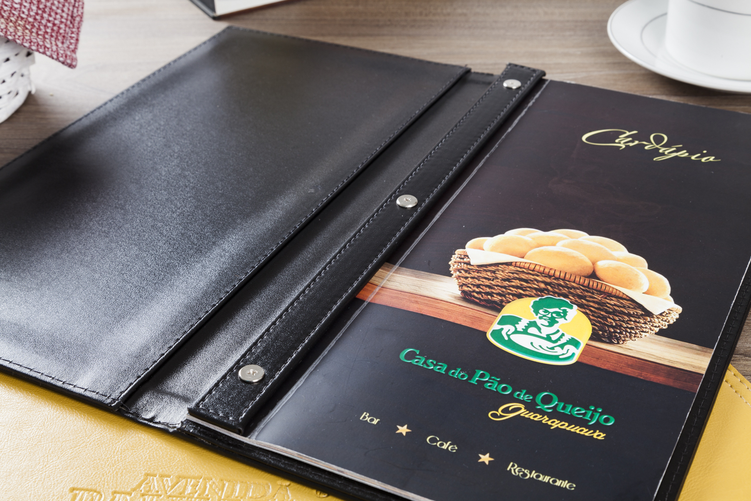 Versátil e de fácil utilização, trata-se da melhor opção para ambientes requintados e para estabelecimentos variados como Lanchonetes, Restaurantes, Pizzarias, Tavernas, Confrarias, Bares, Cantinas e similares. Dentre suas principais vantagens e características, é inegável o seu apelo estético, se configurando numa peça altamente requintada e que gera impacto positivo nos clientes e no público em geral. Além disso, é altamente personalizável, ou seja, é possível customizá-lo de acordo com o viés decorativo do ambiente no qual ele será disposto, bem como aplicar diferentes tipos de acabamento e ainda introduzir a logomarca de seu negócio na capa do cardápio, por exemplo. Desta forma, o estabelecimento ganhar status e destaque, e os clientes sempre irão relacionar a qualidade incrível do cardápio, com os serviços do próprio restaurante. O Cardápio Sintético é um produto concebido com os mais elevados padrões de qualidade, alinhada à tecnologia de ponta, extremamente funcional e criativo. Inove seu atendimento ao público e invista nesta peça de extrema qualidade entrando em contato com a Menuart agora mesmo.Adquira Cardápios de couro de alta qualidade A Menuart oferece o que há de melhor em termos de cardápios, sejam eles cardápios de restaurante, hotel, padaria, entre muitos outros!